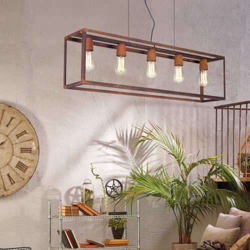Colg. rectangular de hierro 5 luces 5xE27 97x20x26 cm