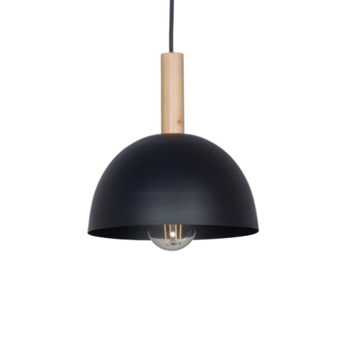 Colgante media esfera de chapa con detalle en madera 1L E27