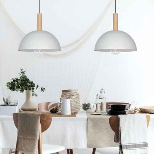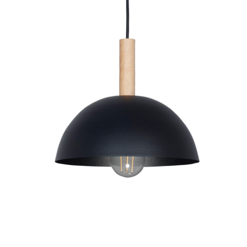 Colgante media esfera de chapa con detalle en madera 1L E27 LED Ø24cm