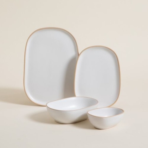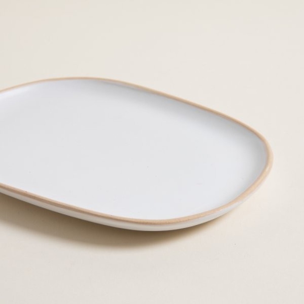 PLATO POSTRE KORBA BLANCO BRILLANTE CON BEIGE