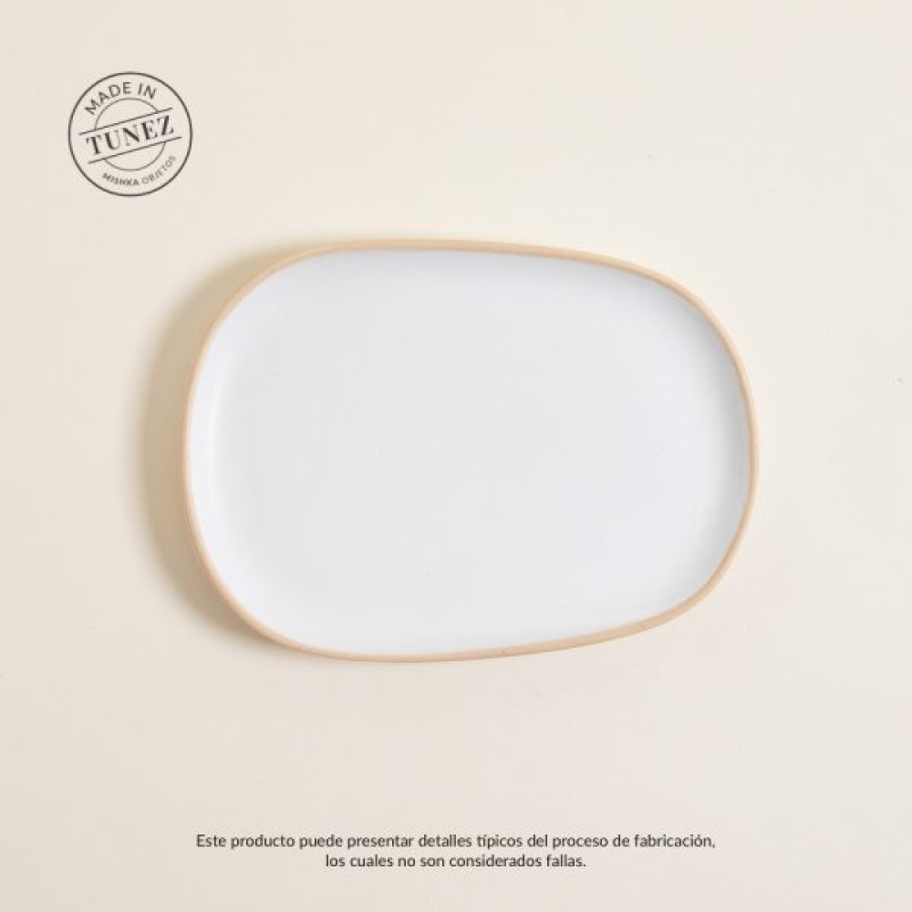 Plato postre korba blanco brillante con beige