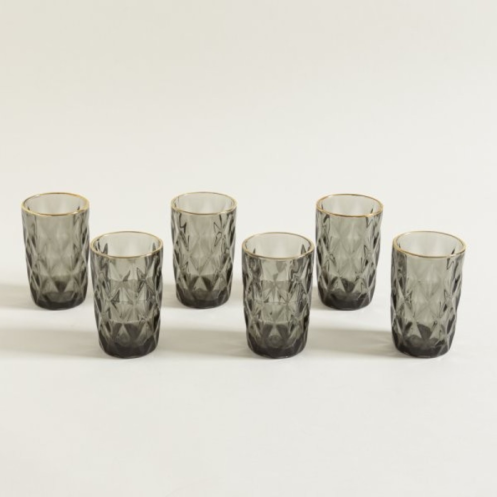 Set x 6 copetineros de vidrio con cuchara y rack de metal