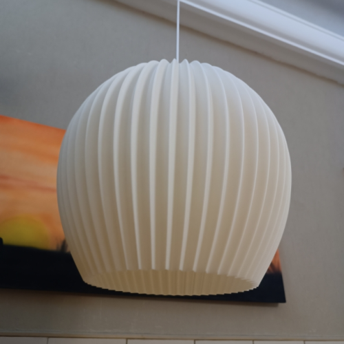 Ficha técnica: Modelo: Colgante Apple. Diámetro: --- Material: PLA (biodegradable y sustentable) Iluminación: Lámpara Led x 1 u. (no incluida) Alimentación: Cable forrado bipolar 1.5 metros. Tensión: 220v.