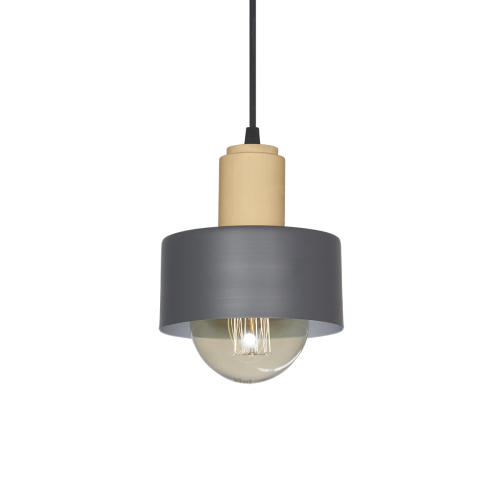 Colgante de metal en diferentes colores con grifa de madera torneada Portalampras tipo e27 Ø 15CM