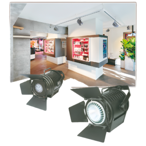 Spot de iluminacion de efecto teatral o escenográfico Flaps demilitadores móviles. Color microtexturado Nergro. Material de Aluminio