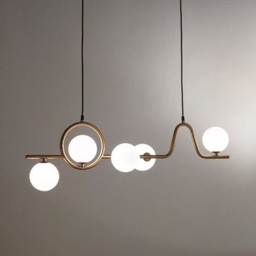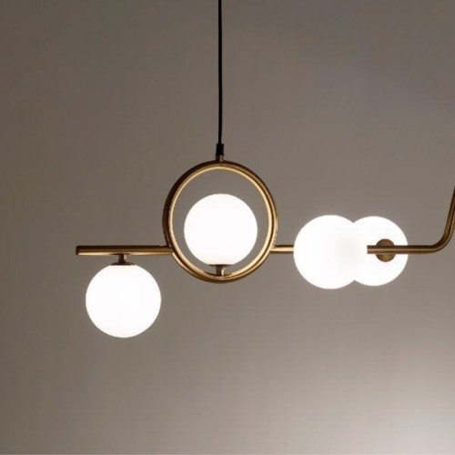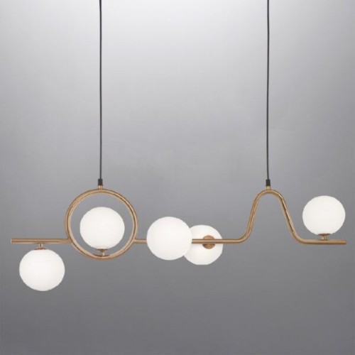 Modelo: Lea Material: Metal y vidrio Tensión: 220v Rosca: G9 x 5 Color: Dorado y blanco Alto: 350 mm Ancho: 1000 mm