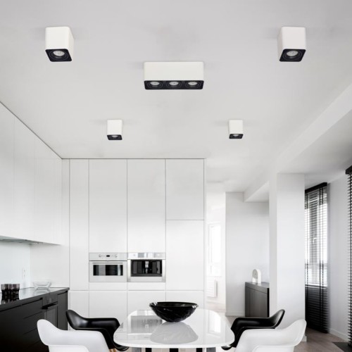 Fuente de luz: LED GU10 x 1 Tensión: 220V Nivel de protección: IP 20 Eficiencia energética: A++ Dimensiones: 10X10CM Color del artefacto: BLANCO Y NEGRO